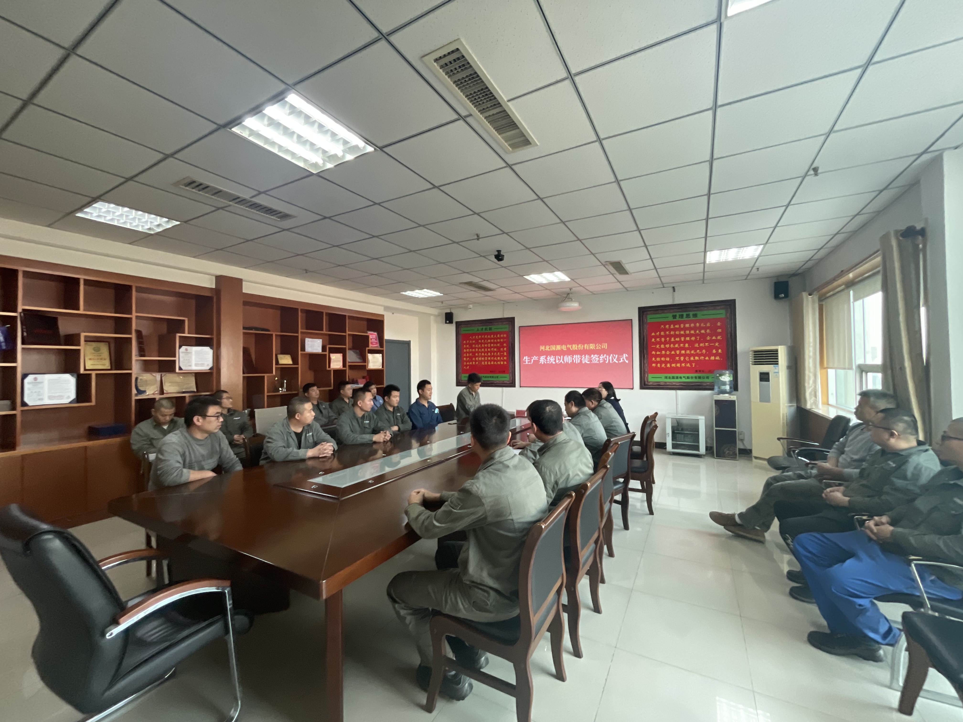 主機(jī)廠機(jī)加車(chē)間主任王立輝宣讀《河北國(guó)源電氣股份有限公司師徒協(xié)議》。