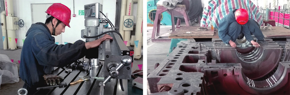 汽封制造加工完成后,現(xiàn)場(chǎng)專用設(shè)備調(diào)整間隙。